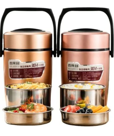 2 Layers Stackable Stainless Steel Hot Bento Lunch Box With Handle